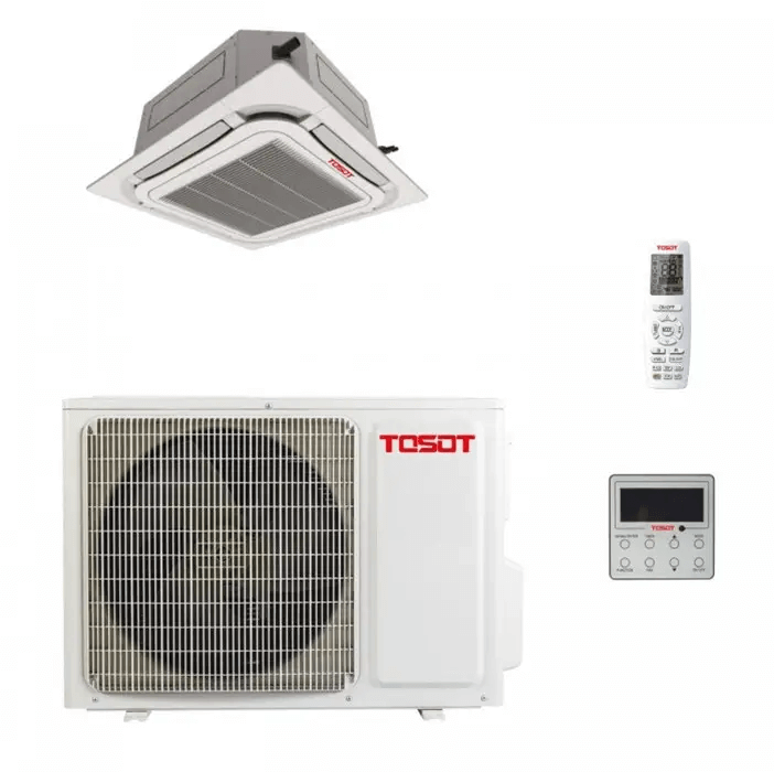 Але внутрішній блок має конструкційні відмінності, що дозволяють рівномірно розподіляти охолоджене повітря по всьому приміщенню на всі боки одночасно. Касетний кондиціонер встановлюється лише у підвісну стелю. Якщо приміщення має дуже велику площу, то можна встановити декілька таких внутрішніх блоків, тобто організувати мульти-спліт систему.